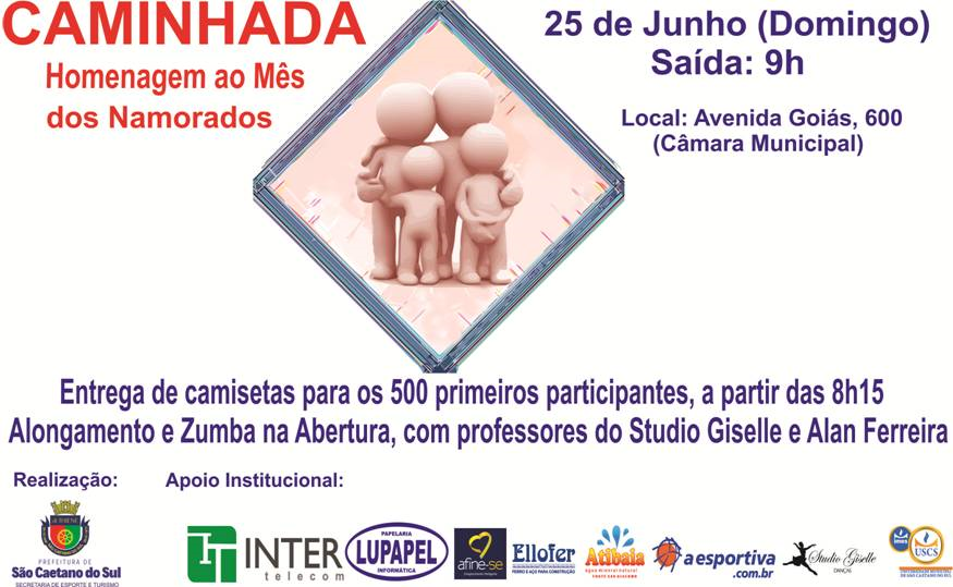 22/06/2017Caminhada Homenagem Mês dos Namorados Emei, Emi, Creche, Emef, Complementares - Comunicado 1440/2025> Segue imagem anexa para divulgação da Caminhada Homenagem Mês dos Namorados, dia 25 de junho a partir das 8h15 na Av. Goias, 600(Câmara Municipal). - Clique aqui para acessar o documento anexo - Quaisquer dúvidas, entrar em contato:Cibele Monteiro - 4224-3972
