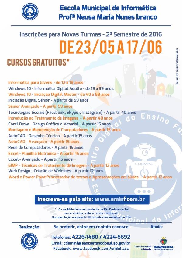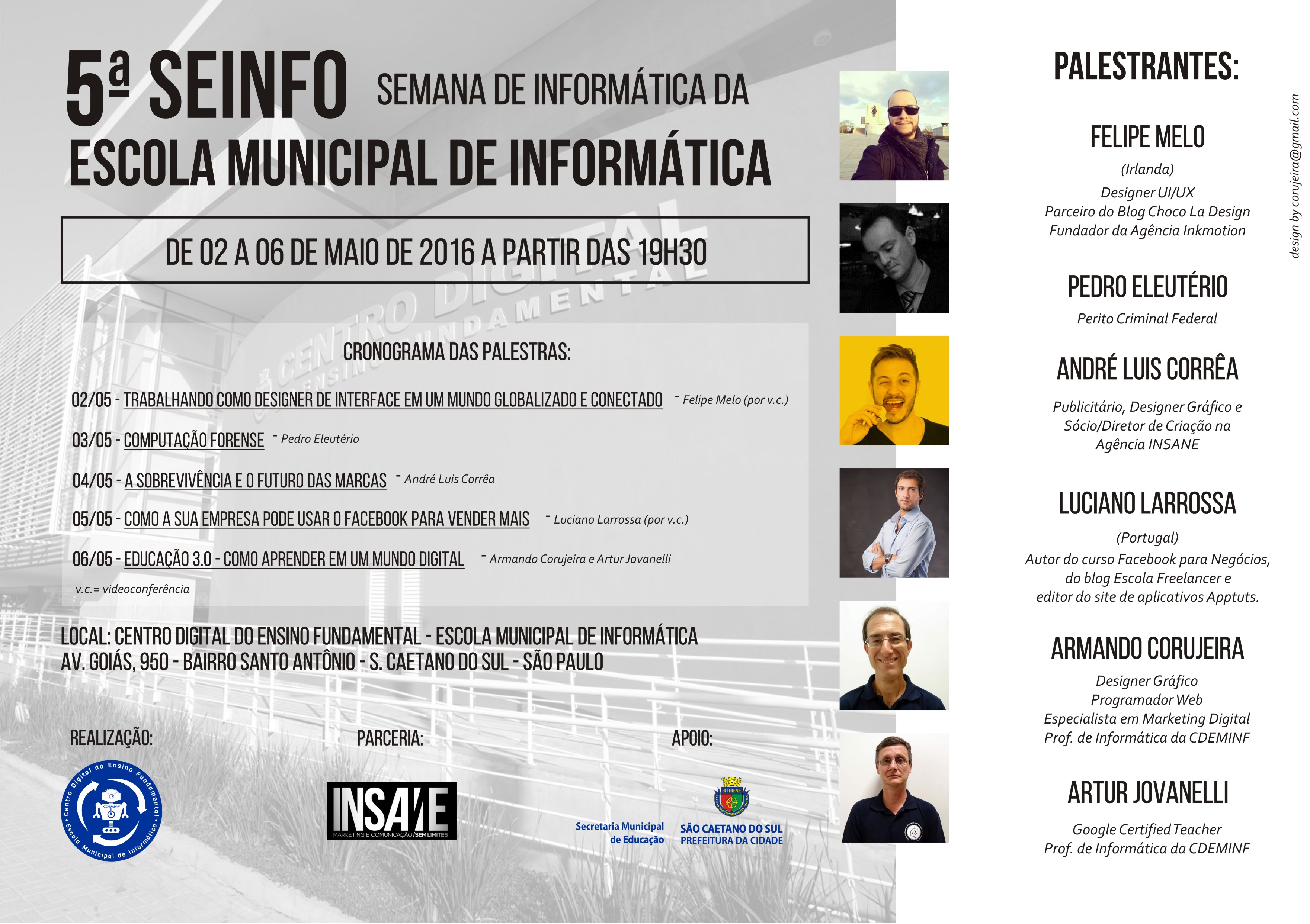 26/04/20165°SEINFO - Semana da Informática C.I., Emef, Complementares - Comunicado 1163/2025> De 02 a 06 de Maio de 2016 Quaisquer dúvidas, entrar em contato:Claudia Inaba - 42262245 - Clique aqui para acessar o documento anexo
