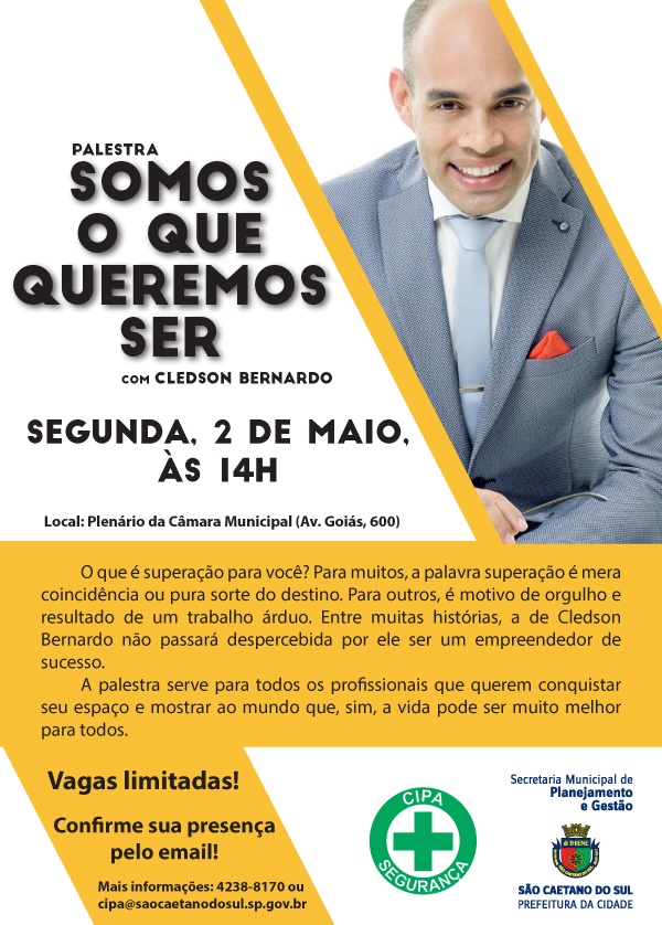 23/03/2016Palestra - Segurança no Lar (CIPA) Emei, Emi, Creche, Emef, Complementares - Comunicado 1137/2025> Palestra sobre segurança no lar. Público alvo: funcionalismo municipal. Favor divulgar em sua unidade. - Clique aqui para acessar o documento anexo - cartaz palestra CIPA Quaisquer dúvidas, entrar em contato:CÉLIA RAMON - PRESIDENTE DA CIPA/SESMT - 4238-8170 |