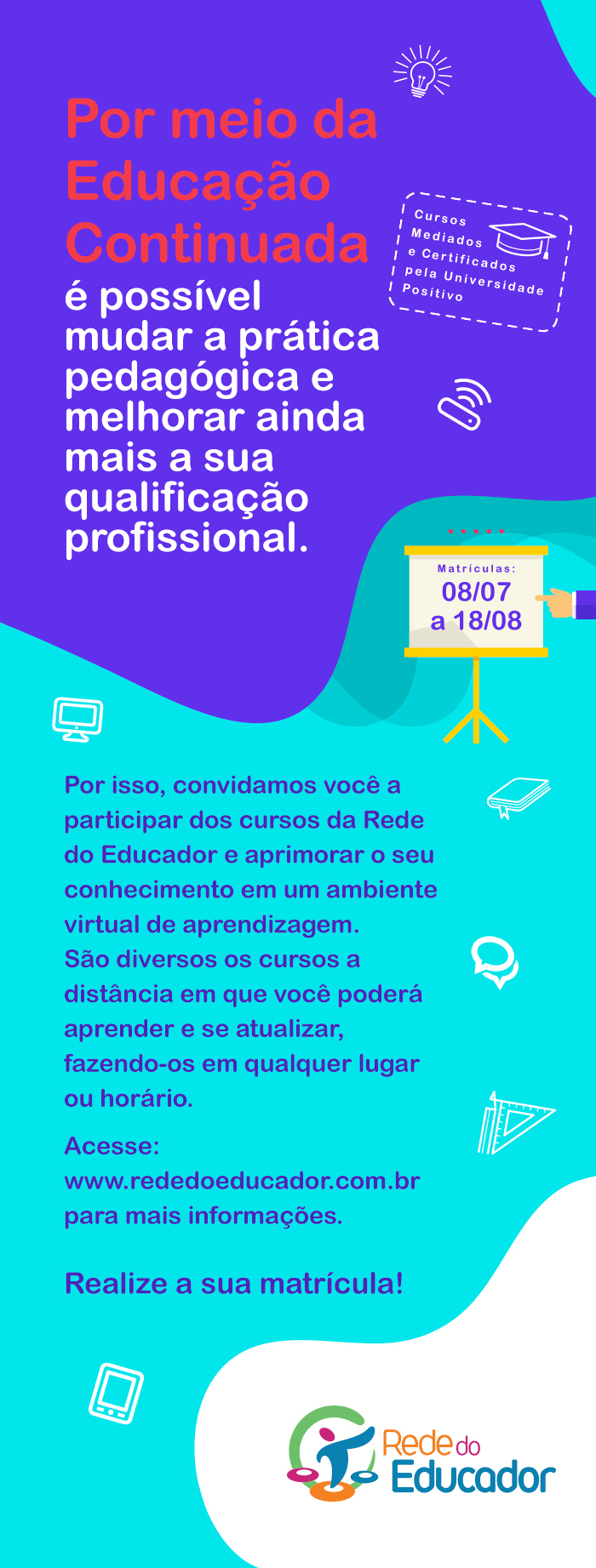 14/08/2015Educação continuada Emei, Emi, Creche, Emef, Complementares - Comunicado 931/2025> Favor divulgarem os cursos de capacitação para que os interessados se matriculem até o dia 18/08. Segue panfleto para divulgação em anexo. Para mais informações acesse: www.rededoeducador.com.br - Clique aqui para acessar o documento anexo Quaisquer dúvidas, entrar em contato:Gabriela - 4226-2245