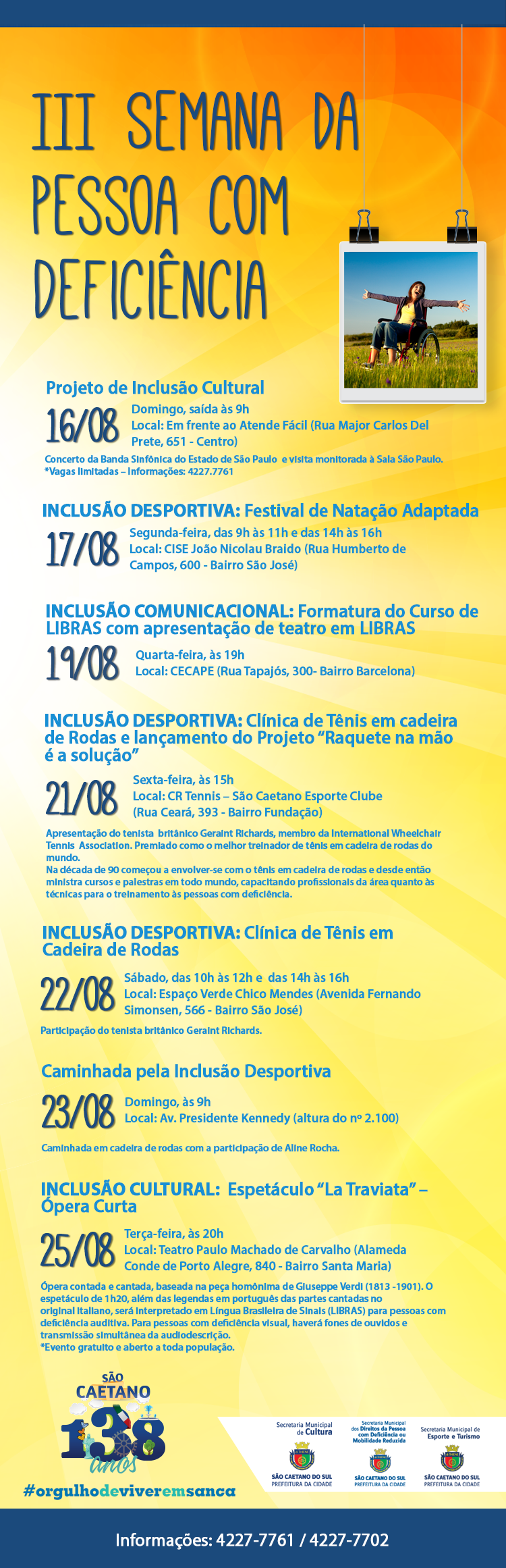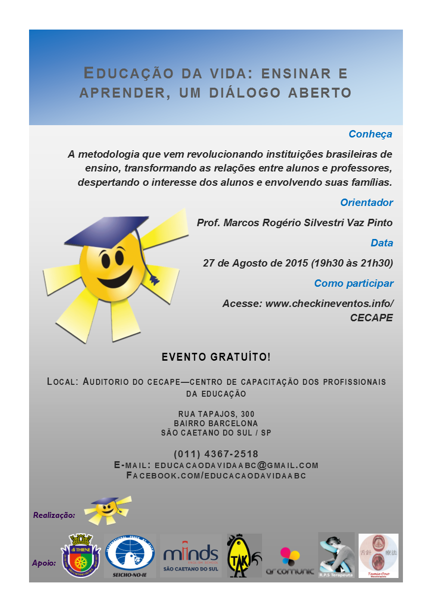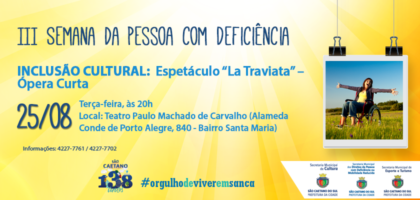 24/08/2015III Semana da Pessoa com Deficiência - Espetáculo La Traviata Emei, Emi, Creche, Emef, Complementares - Comunicado 943/2025> A obra será encenada no palco do Teatro Paulo Machado de Carvalho (Alameda Conde de Porto Alegre, 840, Bairro Santa Maria), na próxima terça-feira (25/8), a partir das 20 horas, com a interpretação na Língua Brasileira de Sinais (LIBRAS), para os deficientes auditivos – serão disponibilizados fones de ouvidos com transmissão simultânea da audiodescrição, para os deficientes visuais. A entrada é gratuita. Baseada nas referências da novela A Dama das Camélias, de Alexandre Dumas Filho, e a ópera La Traviata, do compositor italiano Giuseppe Verdi e do libretista Francesco Maria Piave, a montagem reflete na trama os principais duetos do musical e os detalhes da novela original. Violetta Valèry, uma cortesã parisiense, apaixona-se por Alfredo e larga tudo para viver com ele no interior. Porém, para preservar a honra da família, o pai do jovem o convence a abandoná-la. O casal se separa e em um reencontro, consumida pela tuberculose, Violetta tem um final trágico nos braços de Alfredo. - Clique aqui para acessar o documento anexo Educação da Vida: Ensinar e Aprender, um diálogo aberto Emei, Emi, Emef, Complementares - Comunicado 940/2025> Venham conhecer a metodologia que esta revolucionando as instituições brasileiras de ensino, transformando as relações entre alunos e professores, despertando o interesse dos alunos e envolvendo as famílias. Prof Marcos Rogério Silvestri Vaz Pinto Dia 27 de agosto (19:30 às 21:30) CECAPE Inscrições: www.checkineventos.info/cecape Quaisquer dúvidas, entrar em contato:Fernanda Caielli - 4367-2518