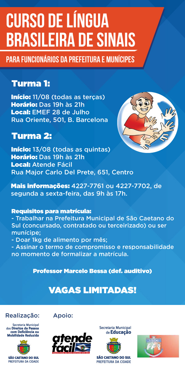 22/07/2015Curso de Libras Emei, Emi, Creche, Emef, Complementares - Comunicado 908/2025> Curso de Libras Módulo Básico (novas turmas) para funcionários da Educação. Clique aqui para acessar o documento anexo