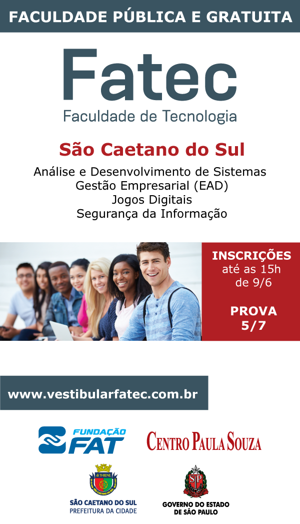 22/05/2015Inscrições para a FATEC até dia 9/06. Prova em 5/07 Emei, Emi, Creche, Emef, Complementares - Comunicado 853/2025> Para conhecimento.