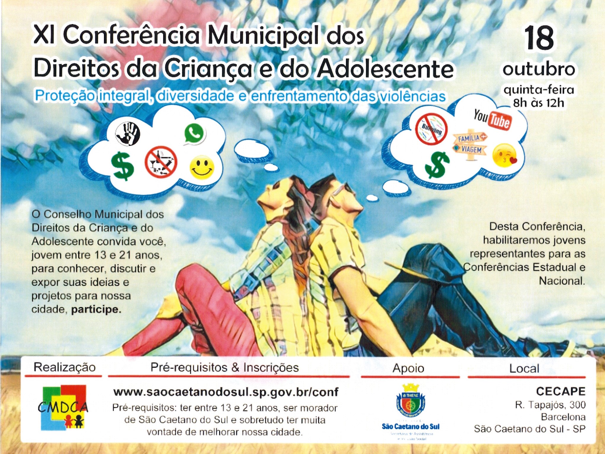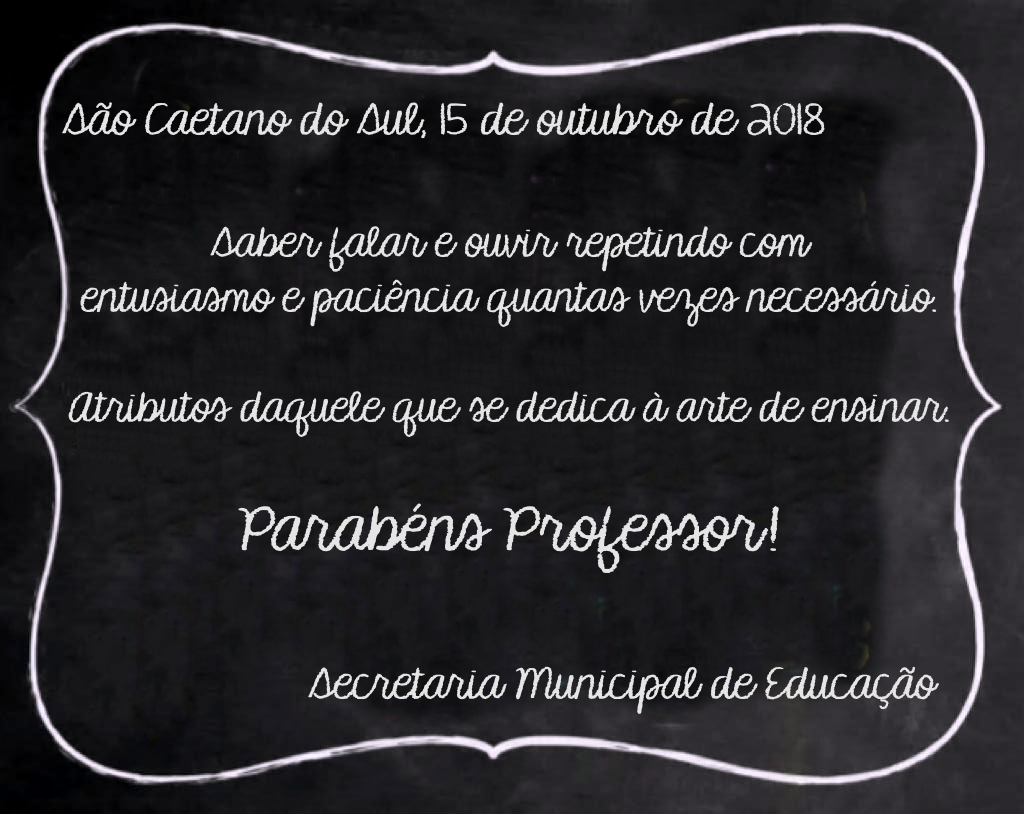 16/10/2018Convite para a XI Conferência dos Direitos da Criança e do Adolescente Emei, Emi, Creche, Emef, Complementares - Comunicado 1914/2025> Segue anexo o convite para a XI Conferência dos Direitos da Criança e do Adolescente: Proteção integral, diversidade e enfrentamento das violências, que será realizada no CECAPE, em 18/10/2018, das 08h às 12h. Atenciosamente. - Clique aqui para acessar o documento anexo Aos mestres com carinho Emei, Emi, Creche, Emef, Complementares - Comunicado 1913/2025> A Secretaria Municipal de Educação homenageia todos os Professores, na pessoa da Professora Vany Rampasso Ferreira. - Clique aqui para baixar reportagem anexo